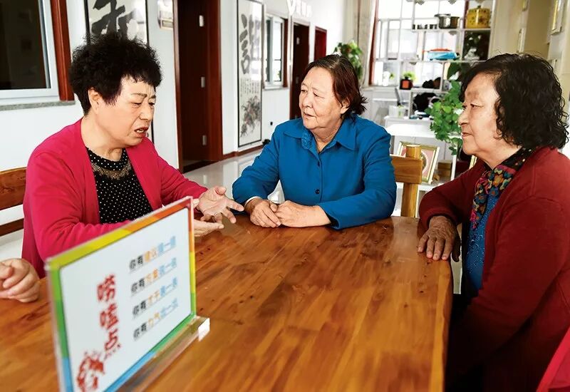 2018年9月13日,宁夏回族自治区吴忠市利通区胜利镇永昌社区居民李大姐(左一)在“唠嗑点”述说着自己的烦恼事。这个“唠嗑点”由社区调解委员会成员担任“热心人”,居民有个家长里短的事情总爱来到这里说一说、唠一唠。中央政法委供图杨晋峰/摄
