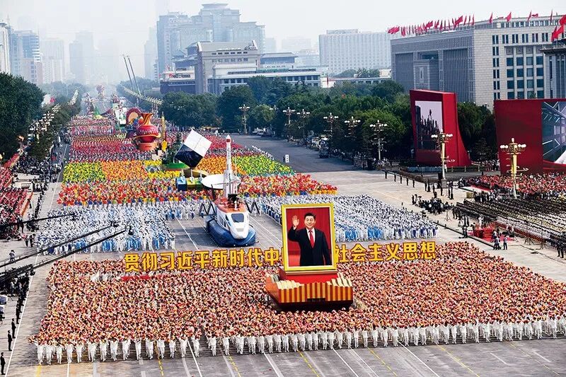 2019年10月1日上午,庆祝中华人民共和国成立70周年大会在北京天安门广场隆重举行。图为“伟大复兴”方阵经过天安门广场。新华社记者徐昱/摄