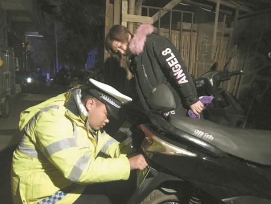 “这样的服务没话说,真正的把实事好事办到老百姓的心坎里了!”黄春霞点赞电动车上牌服务“夜晚模式”温馨、贴心。黄春霞说,自己每天早出晚归,实在没时间去上牌,好不容易有了时间,结果工作人员又下班了。“一直都是时间对不上,这下好了,到了家门口,还迁就着我们的时间来为我们办事,真的太感谢了。”黄春霞将上好车牌的电动车停进车棚后,再次来到车棚门口对民警们连声道谢。
