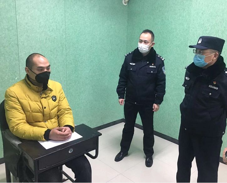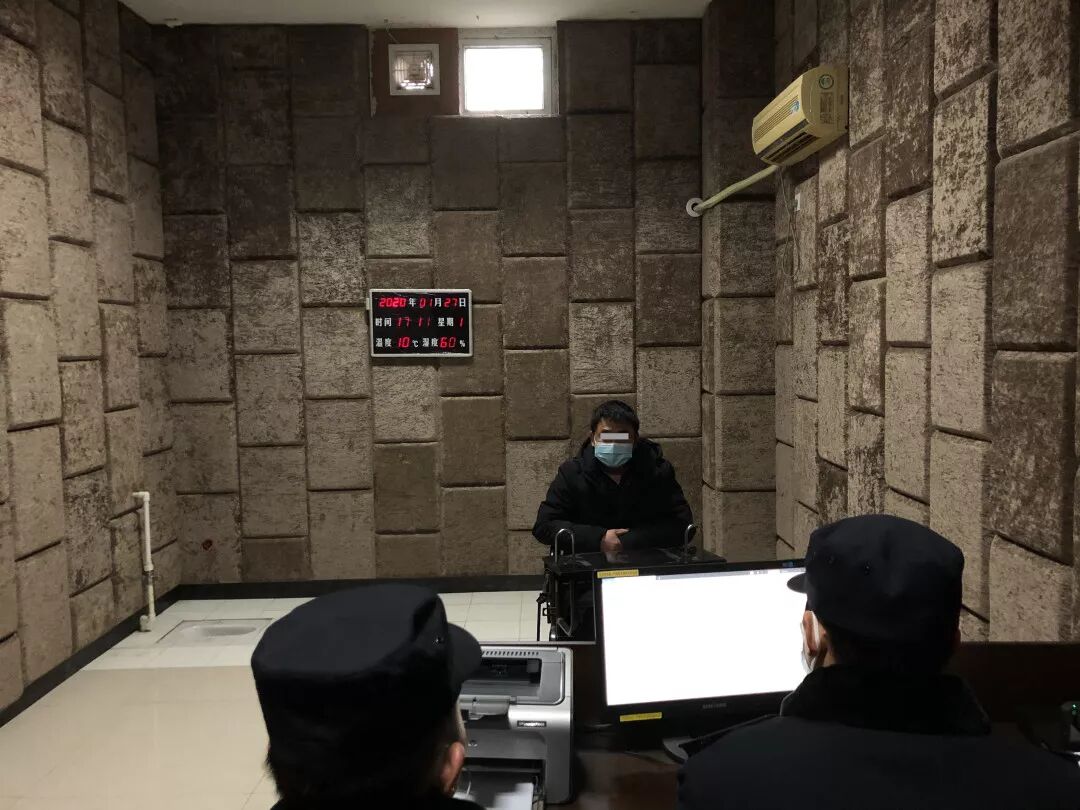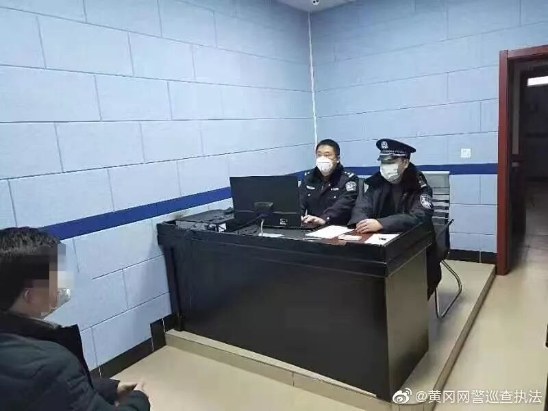 ▲黄梅县公安局讯问发布涉恐言论男子柯某