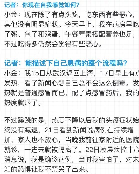 小金:我被确诊后第一时间告知学校的班主任,同学现在也都知道我被隔离了,庆幸的是,周围同学还没有被感染的病例。