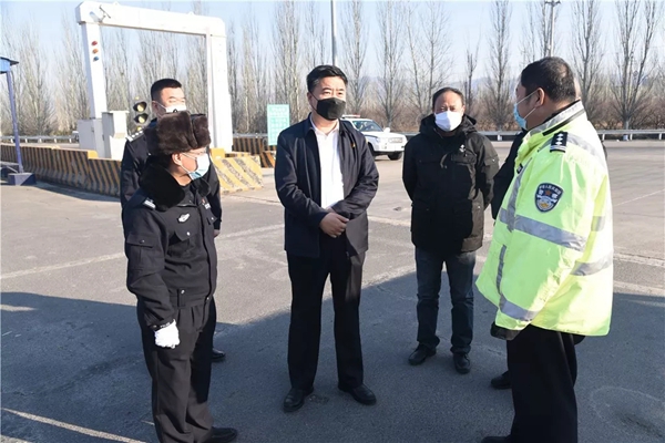 为切实做好复工返程道路安全保障工作,2月10日下午,张家口市副市长、市公安局局长程蔚青来到东花园高速检查站看望慰问广大值守干警和医务人员,并送去慰问品。