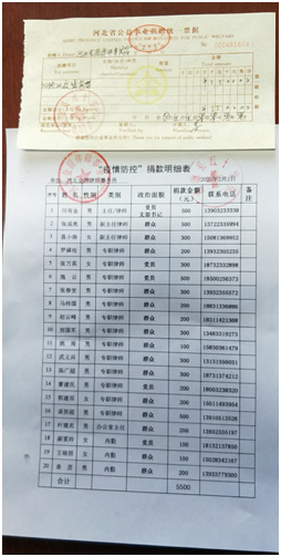 河北环北律师事务所在张北县委、县政府的正确领导下,积极响应县委、县政府的号召,为缓解张北县新型肺炎疫情阻击战一线物资紧缺问题捐款献力,充分展现了守土有责,守土担责,守土尽责,在张北县工商联、张北县总工会发出《关于动员全县广大民营企业抗击新型肺炎疫情捐款捐物的倡议书》后,2020年1月31日,河北环北律师事务所第一时间组织律所全体人员在微信群进行自愿捐款。河北环北律师事务所和全体律师(包括实习律师)共计23人通过张北县工商联向张北县慈善协会捐款5950元。贾鹏律师通过张北县爱心公益协会共计出资1100元为张北抗击疫情一线人员捐献了n95口罩、护目镜、医用一次性口罩。王晓鸽及王磊磊分别通过手机微信捐资50元、20元。以上捐赠共计7120元,希望能为本地疫情防治工作贡献微薄之力,进一步激发全所人员的昂扬斗志和奉献精神。