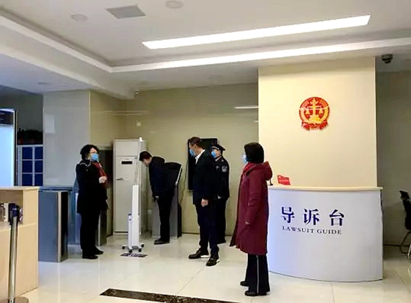 2月4日,张家口市中级人民法院党组书记、院长王靖到诉讼服务中心部署检查疫情防控期间的诉讼服务工作,徐凤青副院长等陪同检查。