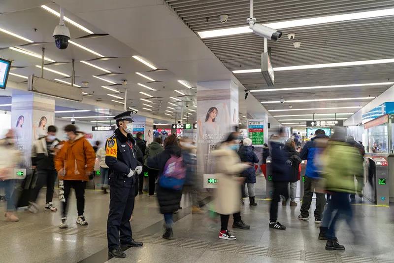 春节期间,市公安局公交总队启动高等级勤务,以确保绝对安全为中心,全面强化治安防控。尤其对客流量较大的站点,加强巡逻防控和盘查力度,强化安全检查。出动多支巡特警小分队在重要轨道线路和重点车站开展巡逻防控。春节假期首日疏导客流100余万人次,处理群众求助警情80余起,为乘客出行营造畅通、有序的乘车环境。