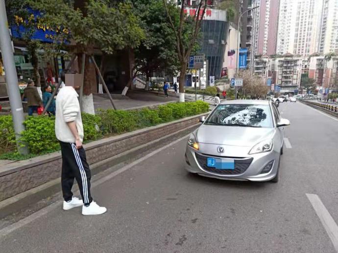 经聊天,民警了解到,这位小伙子姓张,来自四川宜宾,春节假期结束后便自驾来到重庆,准备在人气超高的观音桥商圈找份工作。平时开惯了家乡的平坦大道,山城弯弯绕绕的道路让他感到有些力不从心,特别是眼前坡度异常陡峭的三钢二支路,幸好民警巡逻碰巧经过,他便赶紧上前求助。