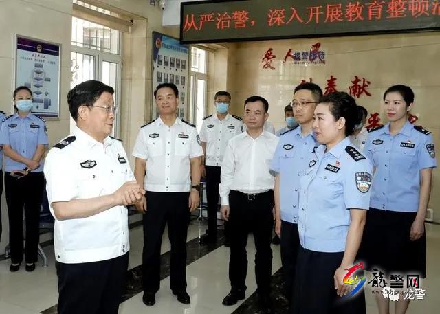 8月6日至8日,国务委员、公安部党委书记、部长赵克志在吉林和黑龙江调研,图为赵克志在哈尔滨市公安局道外分局东莱街派出所与民警辅警亲切交谈。满博摄影