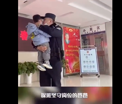 2月12日大年初一,安庆市公安局经开分局同安路派出所辅警王彬在派出所值班。这天,是他儿子的生日。上午,小警宝在妈妈的陪同下来到派出所,给坚守岗位的爸爸送上一个大大的拥抱:“爸爸加油,等你回家吃蛋糕!”