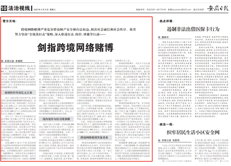 组织大批人员诱赌、涉案金额500多亿、网赌平台多达10余个……合肥市公安局经开分局经过数月缜密侦查,成功破获一起跨境网络赌博案,打掉一个境内外勾结的网络赌博犯罪集团。