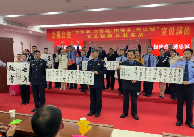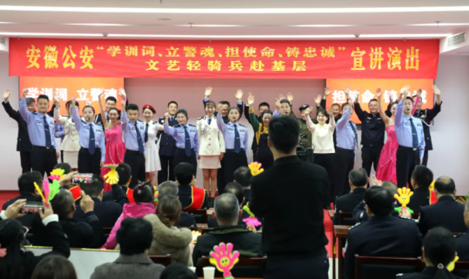 为学习宣传贯彻好中央全面依法治国工作会议、党的十九届五中全会和习近平总书记在中国人民警察警旗授旗仪式上的重要训词精神,用文艺的形式讲好安徽警营故事、展现安徽公安风采、共建和谐警民关系,省公安厅党委决定从全省公安机关选拔优秀文艺人才组成“文艺轻骑兵”,赴金寨县江店派出所、淮南市曹庵派出所、濉溪县临涣派出所等6个基层一线所队开展宣讲演出。