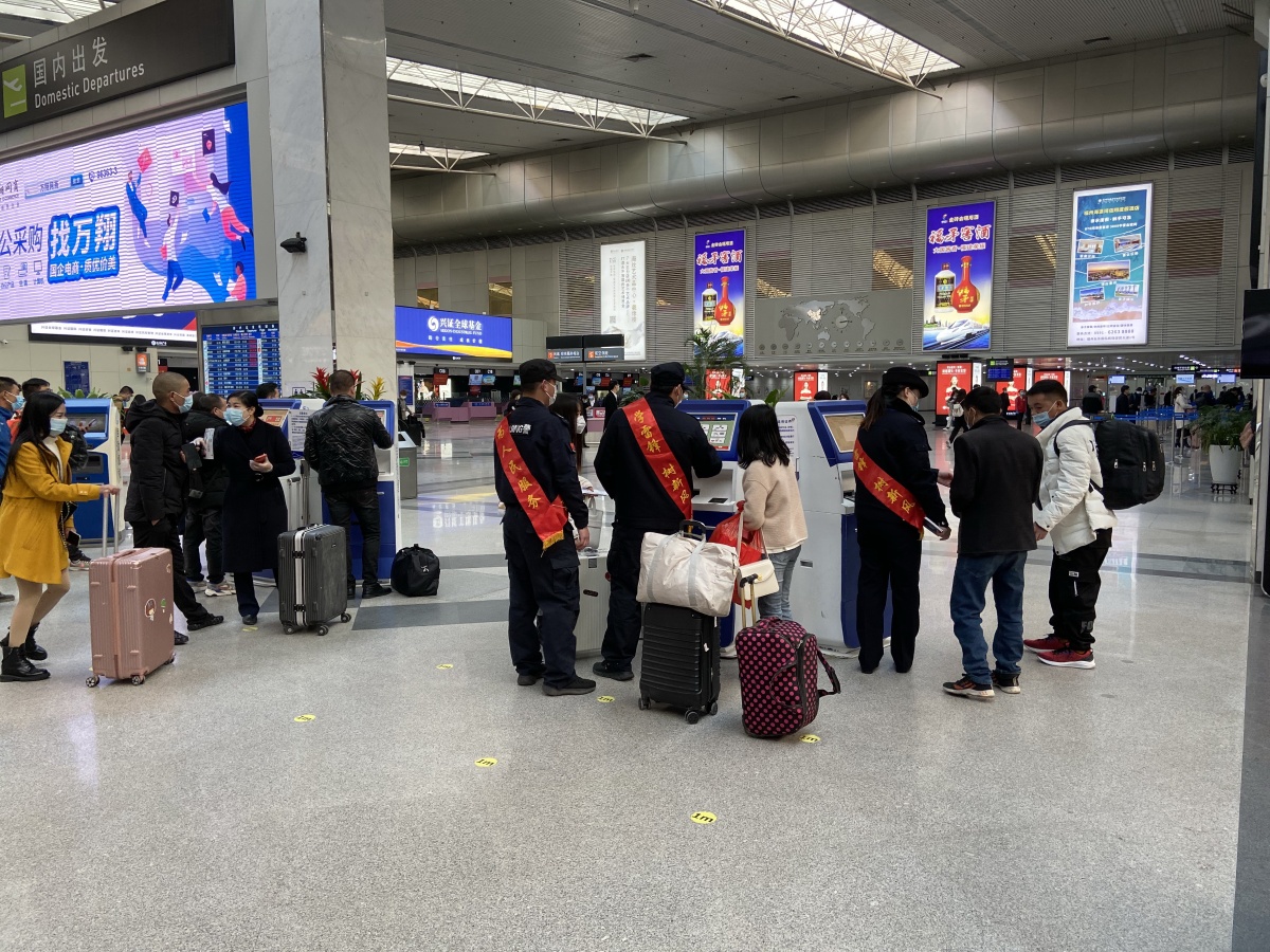 活动中,党员民警帮助乘客领取登机牌,引导乘客前往各自的航空公司柜台办理托运;帮助指引旅客在候机楼公安窗口办理临时乘机证明;发放宣传手册,普及理性维权、反诈骗等相关安全知识;协助机场防疫部门核验健康码,及时疏导进出口旅客,避免旅客长时间聚集逗留。此次活动共发放宣传资料80余份,为旅客提供咨询服务100余人次,赢得了广大旅客一致好评,树立了机场公安民警的良好形象。