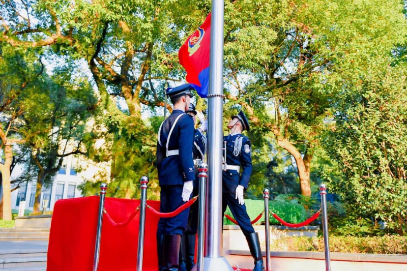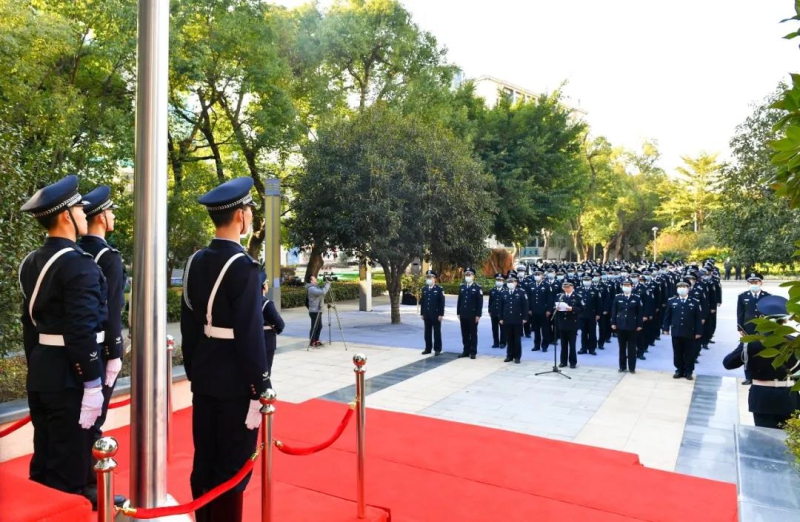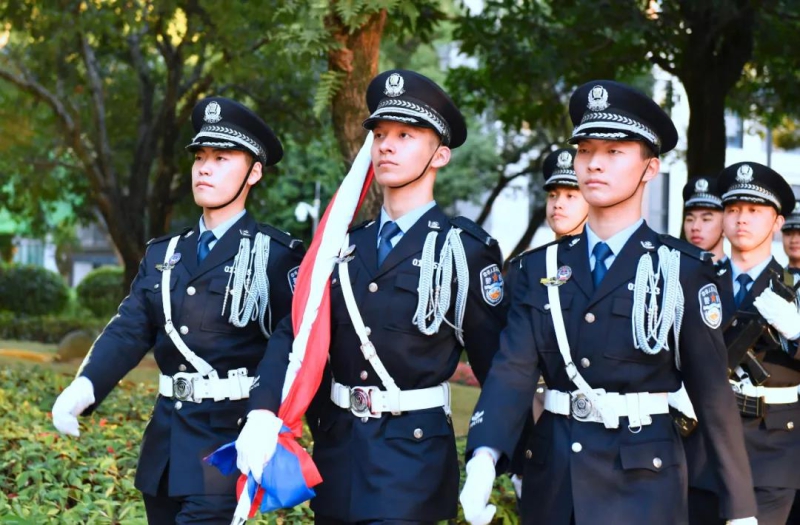 举行升旗仪式。上午,省公安厅在厅机关举行中国人民警察警旗升旗仪式,全体人员面向警旗,高唱警歌,重温入警誓词。在家厅领导、厅级干部,厅属各单位主要负责人、厅机关功模民警代表参加仪式。