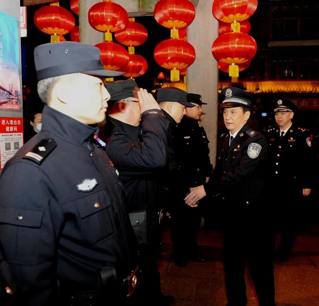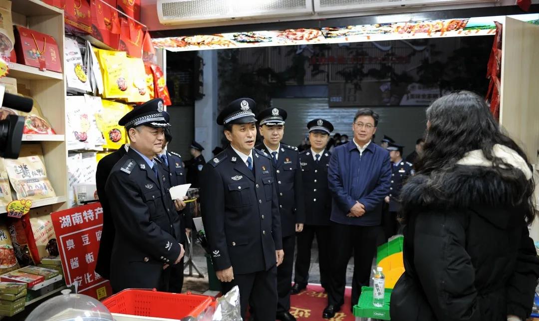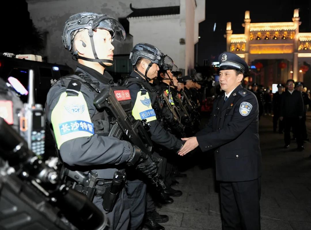 除夕夜,长沙五一商圈张灯结彩,到处洋溢着祥和喜庆的节日氛围。许显辉同志一行先后到天心区太平街、火宫殿等地公安执勤点检查督导安保工作,详细了解勤务部署、巡逻执勤、社会面管控、交通疏导等安保措施执行情况,向一线执勤民警致以新春祝福并与群众亲切交流。随后,许显辉同志来到长沙市公安局情报指挥中心,看望慰问节日期间仍然坚守在接处警第一线的执勤值班民警,要求大家牢固树立“群众过节、公安过关”的意识,准确把握今年春节期间社会治安规律特点特别是安保工作存在的变量风险,针对性落实打防管控各项措施,确保让人民群众过一个欢乐祥和平安的新春佳节。