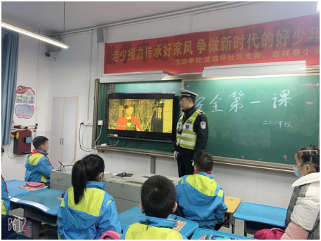 为进一步增强辖区中小学生的交通安全意识和自我保护意识,切实提高广大师生的交通法律意识,从源头遏制交通事故的发生,引导学生养成文明交通的良好习惯,3月1日,值长沙市中小学开学之际,开福大队组织宣传民警辅警走进营盘街小学、新竹小学等辖区学校开展交通安全宣传教育活动。
