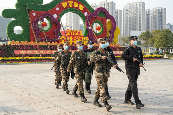 为维护社会面治安持续平安稳定,保障人民群众欢度新春佳节,岳阳公安巡特警支队会同武警岳阳支队,深化公安武警联勤联巡联防联控机制。春节期间全市每日投入巡防警力近400人,最大限度把警力摆上街面,“屯警街面,动中备勤”采取定点屯警与车巡、步巡相结合的方式,在车站、广场、商场等春节期间人员密集场所开展巡逻防控工作。