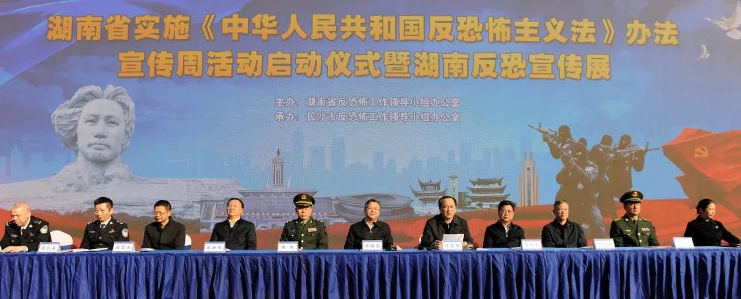 12月22日,《湖南省实施<反恐怖主义法>办法》(简称“《实施办法》”)宣传周活动启动仪式暨湖南反恐宣传展在长沙市党史陈列馆举行。省委常委、省委政法委书记李殿勋出席仪式并讲话,副省长、省公安厅长许显辉主持仪式。湖南省、长沙市反恐怖工作领导小组及成员单位负责人、相关重点目标单位代表、媒体代表200多人参加活动。