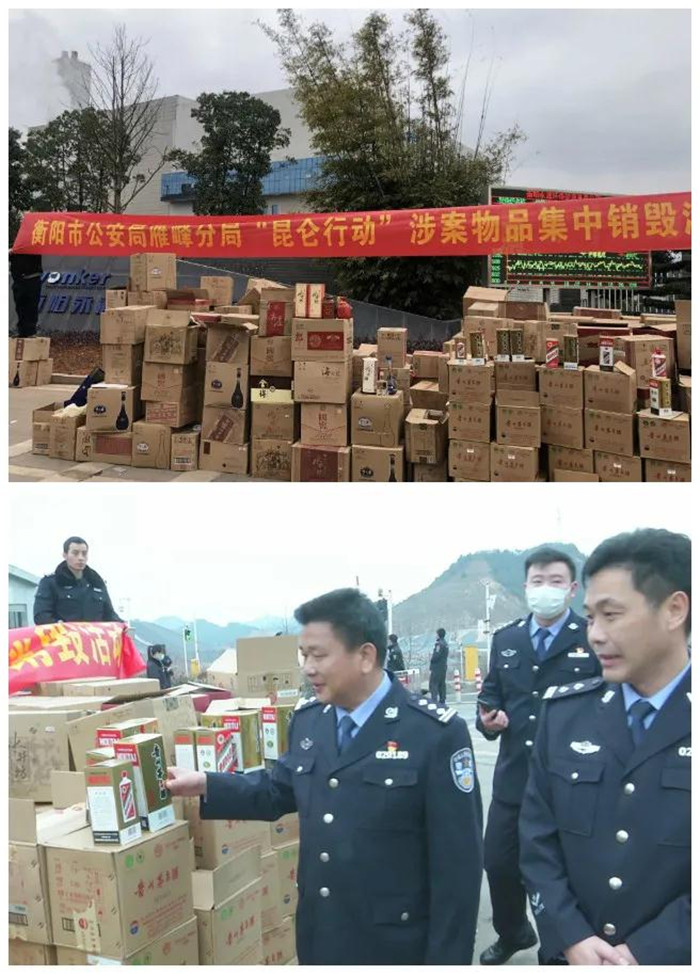 2月2日,衡阳市公安局雁峰分局治安大队联合雁峰区人民检察院、雁峰区市场监督管理局开展了“昆仑行动”涉案财物集中销毁活动。此次集中销毁活动共销毁各类假酒合计5000余瓶,涉案价值2000多万,雁峰公安分局积极响应公安部开展的“昆仑行动”,严厉打击“环食药”类犯罪,保障人民群众的生命财产安全,守护一方碧水蓝天。