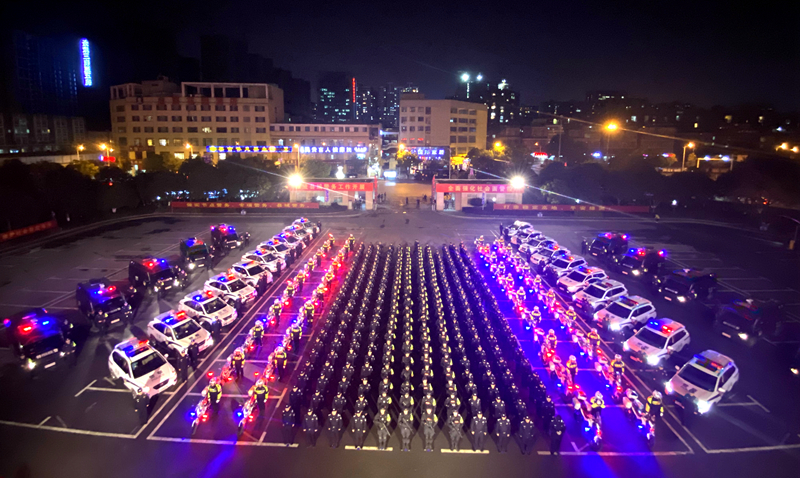 晚上9时,天心分局院内前坪警灯闪烁,400余名警力警容严整,30台巡逻警车、40辆交警铁骑蓄势待发,随着副市长、市公安局局长刘新良一声令下,警笛鸣响,各路参战警力迅速奔赴辖区各任务现场。与此同时,集中清查行动也在全市其他区、县、市同步启动。
