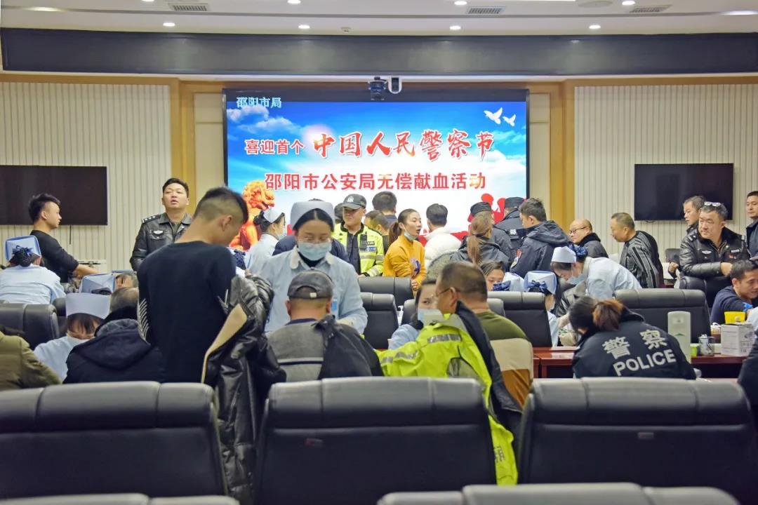 在首个“中国人民警察节”即将来临之际,1月7日, 邵阳市公安局团委组织市区公安机关200余名民辅警、职工开展无偿献血公益活动,大家以这种特殊方式为“警察节”献礼,累计献血达7万余毫升。