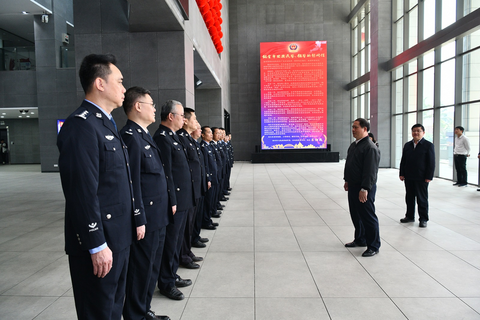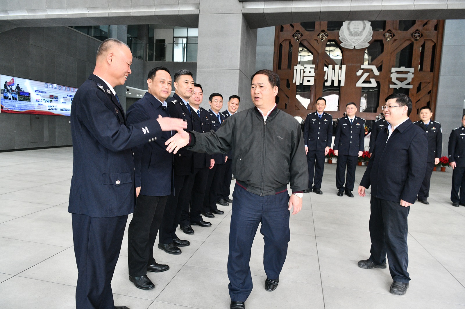 2月23日,梧州市委书记全桂寿来到市公安局、交警支队走访慰问。市委常委、秘书长徐文伟,市委副秘书长邱振宇参加慰问。