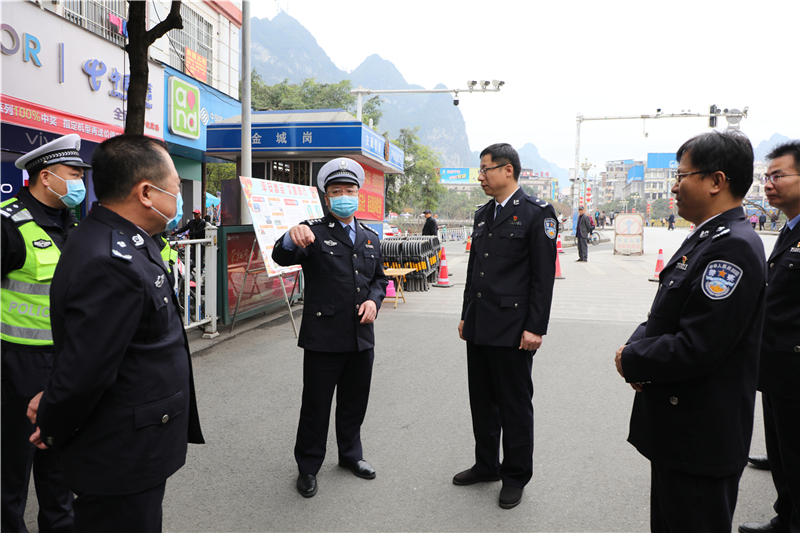 2月18日春节收假上班首日,河池市副市长、市公安局党委书记、局长李文博到市公安局机关办公室、警保处、政治部、宣传科、经侦、禁毒、治安、法制等有关部门以及执勤一线和服务窗口单位,看望慰问民警、辅警,向大家转达市局党委的关心和祝福,激励全市公安民警、辅警立足新征程、开启新局面。