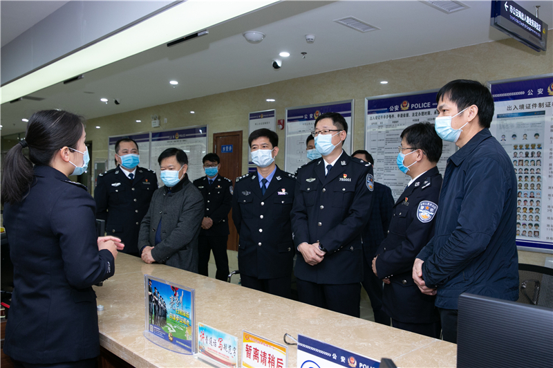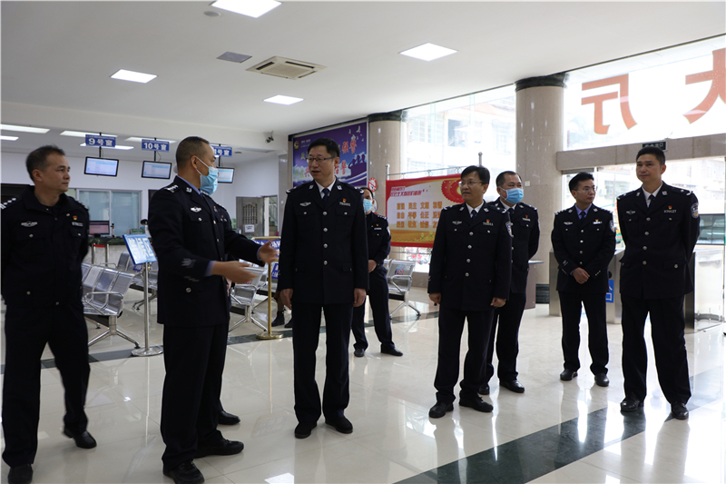 在车管所、出入境办证大厅,李文博认真听取了公安政务大厅相关业务工作开展及“放管服”等各项政策措施具体落实情况汇报,详细询问并查看车驾管、出入境、治安等窗口业务流程及办理证件情况,对公安窗口服务单位各项工作给予充分肯定,并对做好今年的工作提出了要求,希望大家坚持以人民为中心的发展思想,坚持稳中求进工作总基调,以推动河池公安工作高质量发展为主题,以推进教育整顿、锻造过硬队伍为保证,立足本职、再接再厉,全面提升“放管服”能力和水平,为全市经济社会发展提供坚实的服务保障。