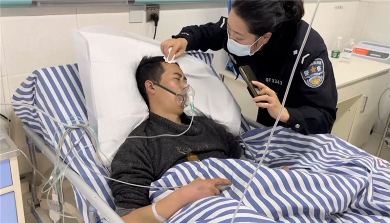 在男子家属抵达稻城前的24小时里,男子渐渐有了点意识,但很模糊,金珠派出所的民辅警轮流在医院照顾陪伴男子,守护在他身边,一直与他交流,鼓励他,让他坚强……可能是独自一人在陌生的地方生病,接到家里人视频电话的那一刻,男子控制不住的流泪,派出所辅警李志芳为其擦拭着眼泪……