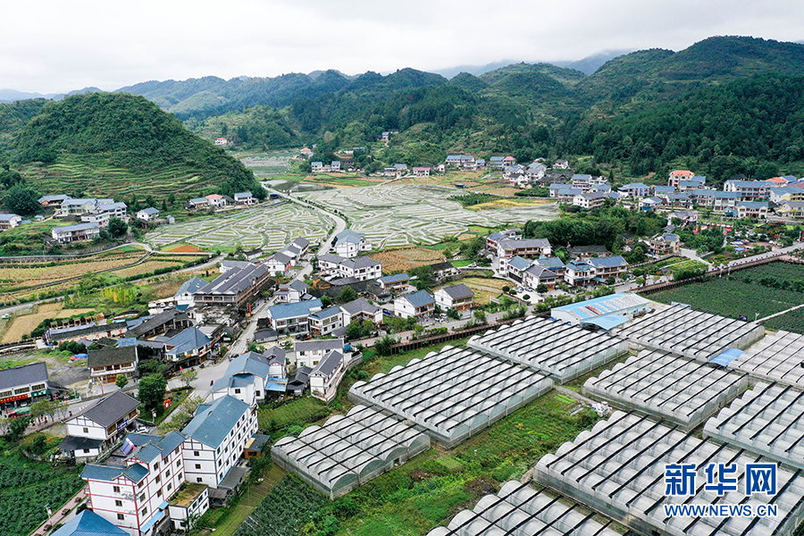 这是2020年9月27日拍摄的贵州省遵义市播州区枫香镇花茂村(无人机照片)。新华社发(胡攀学 摄)
