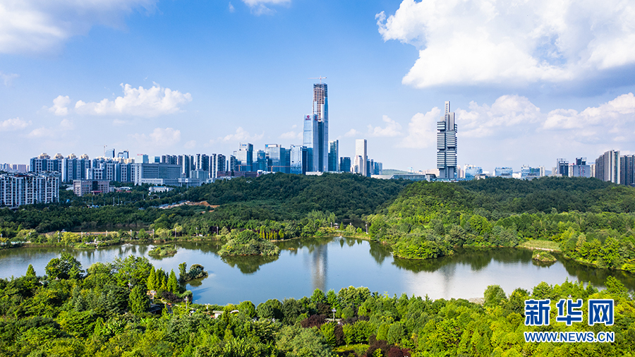 夏日里的贵阳市观山湖公园风光(2020年7月29日摄,无人机照片)。新华社记者 陶亮 摄