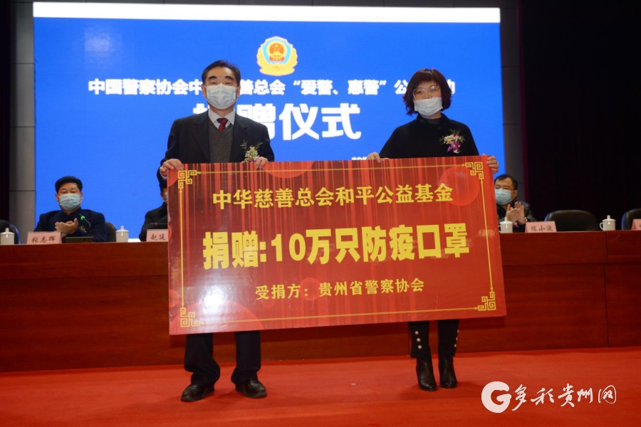 捐赠现场 多彩贵州网讯(记者 倪淑琴) 1月12日上午,“爱警、惠警”公益慈善活动捐赠仪式在省公安厅大礼堂举行,中国警察协会、中华慈善总会及社会爱心人士向贵州省公安机关捐赠100万元医疗器械和10万只防疫口罩。