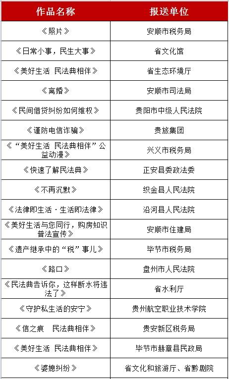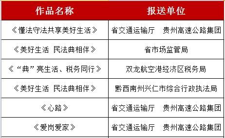 获奖作品将于近期在在多彩贵州网、众望APP、“黔微普法”、“法治贵州网”等省级主流新媒体平台宣传展播,部分作品还将在人民日报客户端、腾讯、新浪等媒体平台展播。