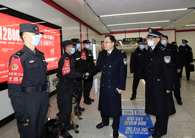 余建首先来到东方红广场,实地检查了地下商业街安保工作、广场南口警务站运行保障和智慧警务建设情况,亲切慰问了一线执勤民警。余建指出,东方红广场是兰州市综合性大型文化广场,也是老百姓休闲娱乐、商贸购物的聚集地,做好巡逻防控意义十分重大。一要强化联防联控。立足广场周边休闲娱乐场所多、人员流动性大的实际,进一步完善公安武警联防联控机制,优化装备设施配备,严防发生各类突发事件。二要强化技防建设。进一步加大技防设施投入力度,切实提高预警防范能力。三要强化日常管控。地铁人流大、风险高,必须采取“传统+科技”的方式,提升快速反应能力,确保一旦有事,能够整体联动、快速处置。