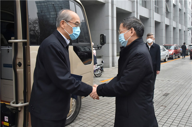2021年2月5日,最高人民检察院党组书记、检察长张军走访九三学社,征求对检察工作的民主监督意见。最高检副检察长张雪樵陪同走访。