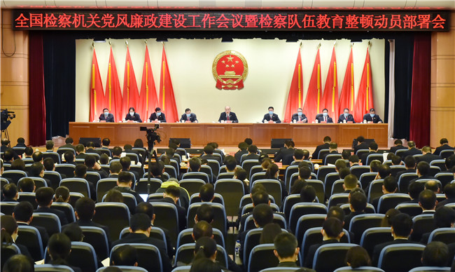 2月27日,最高人民检察院召开全国检察机关党风廉政建设工作会议暨检察队伍教育整顿动员部署会。最高检党组书记、检察长张军出席会议并讲话。