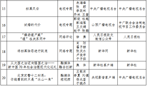 2019年度全国政法优秀新闻作品评选结果公示公告