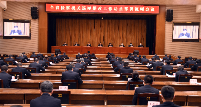 会议以视频形式召开。省院设主会场,各市(分)院、派出院和基层院设分会场。省院领导班子成员、一级巡视员、厅级干部、二级高级检察官、二级巡视员、驻院纪检监察组和各内设机构副处级以上干部在主会场参加会议,各级院中层以上干部在分会场参加会议。