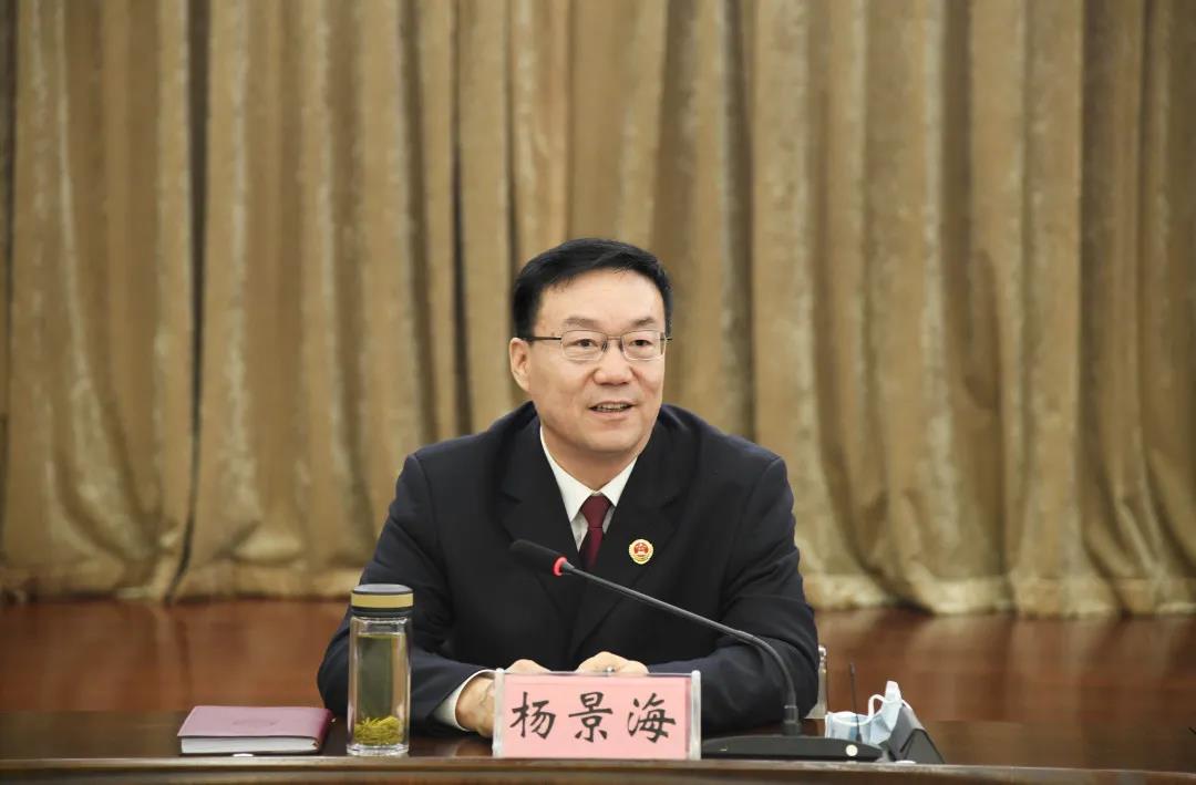 杨景海要求,要深刻把握新发展阶段对检察工作提出的新要求,在服务构建新发展格局中发挥好检察职能。要在平安中国建设中体现检察新担当,坚持落实总体国家安全观,坚持共建共治共享方向,坚决守住守牢安全稳定底线红线。要在服务新发展格局中发挥检察新作用,紧紧围绕省委“四为四高两同步”总体思路和要求及“十四五”转型出雏形目标,积极为“八大转型”、“六新突破”和“十大战略”保驾护航。要在保护创新创业中展现检察新作为,全面加强产权司法保护,服务党和国家创新驱动战略,通过刚性打击与柔性服务相结合的保护方式,在更高层次、更高质量、更高水平上激励和保护创新。要在推动绿色发展中作出检察新贡献,持续加大生态环境司法保护力度,在依法从严惩治破坏环境资源犯罪的同时,更充分有力地发挥生态环境公益诉讼在生态文明建设中的积极作用。要在法治中国建设中履行检察新使命,紧紧抓住人民群众反映强烈的有法不依、执法不严、违法不究、司法不公等突出问题,加大法律监督力度,在法治中国建设中发挥更大作用。要在保障民生福祉中办好检察新实事,始终把服务保障民生民利作为初心使命,坚持以人民为中心,用心、用情、用力解决好人民群众的操心事、烦心事、揪心事,体现司法为民的情怀。