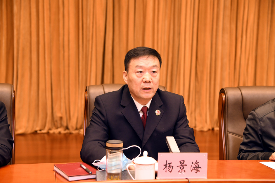 省检察院党组书记、检察长杨景海主持会议并作动员讲话,最高检党组第三巡视组张燕飞组长到会指导,省检察院党组副书记、副检察长崔国红传达学习党的十九届五中全会公报。