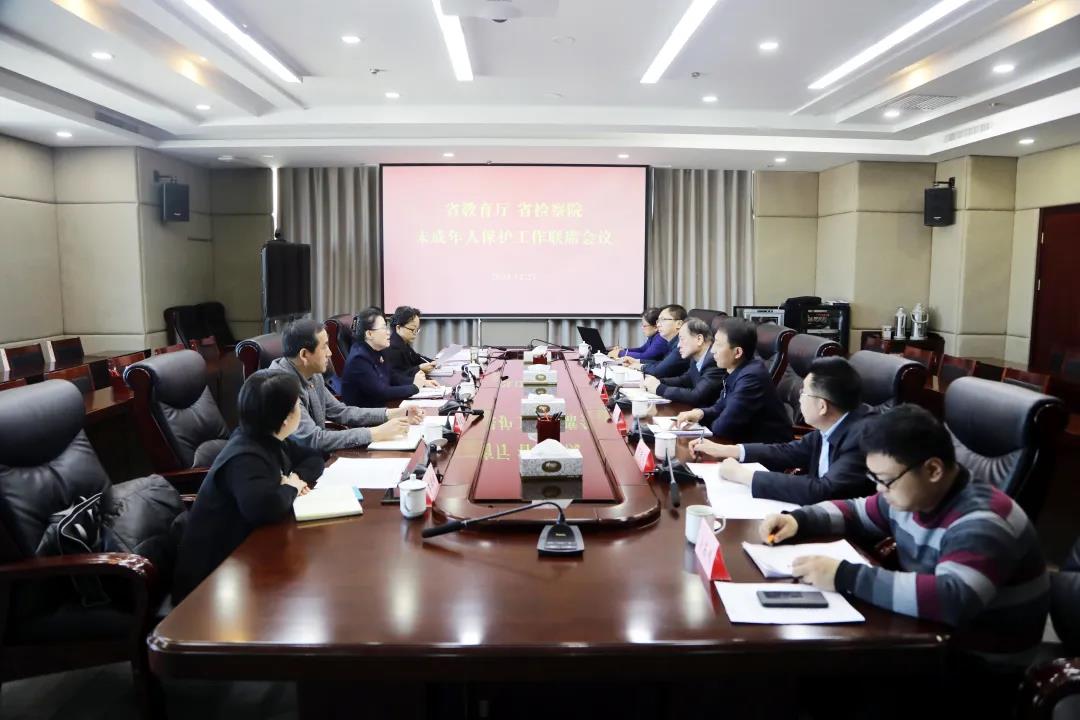 会议指出,近年来,省检察院和省教育厅深入贯彻习近平总书记关于未成年人保护重要指示精神和《大纲》的具体要求,认真落实高检院、省院两个“一号检察建议”,教育行政主管部门坚持依法治校、依法治教、依法治学,全省未成年人保护工作呈现良好态势,校园安全管理取得积极成效。深化法治进校园活动,进一步明确了法治副校长的职责定位、履职方式、宣讲内容等,进一步增强了未成年人尊法学法守法用法意识。特别是省检察院杨景海检察长率先垂范,担任法治副校长,走进校园授课并与孝义中学班子成员共同研究青少年法治教育工作,培育形成了落实《大纲》的“孝中经验”,推动我省未成年人保护工作不断向纵深开展。