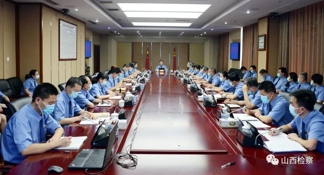 7月24日,省检察院党组书记、检察长杨景海主持召开党组(扩大)会议,进一步传达学习最高人民检察院张军检察长山西调研讲话精神,研究贯彻落实意见。