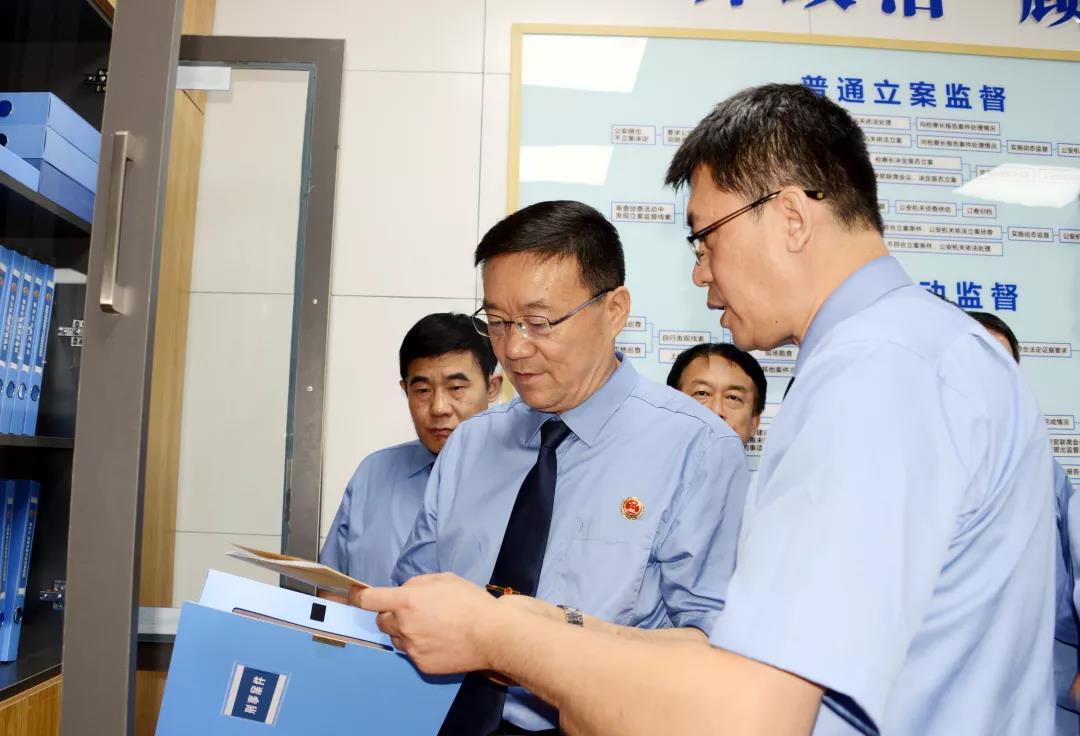 7月15日,省检察院党组书记、检察长杨景海在太原市检察机关调研时强调,要积极实践探索“转型的检察”和“检察的转型”这一课题,为服务保障我省转型发展蹚新路贡献检察力量。 期间,杨景海一行分别在太原市检察院、小店区检察院、万柏林区检察院派驻同级公安机关执法办案中心检察室调研,认真听取了工作汇报,仔细查看了派驻检察室的工作资料,详细询问了派驻检察室的建设情况、人员构成、办案情况。在太原市小店区检察院调研时实地查看了案件管理中心,观摩了实时远程庭审。在太原市检察院调研时,实地查看了扫黑除恶办公室、执法监督办公室,并召开了调研工作座谈会。省检察院检察委员会专职委员宋晋民、太原市检察院党组书记、检察长宁建新参加调研。