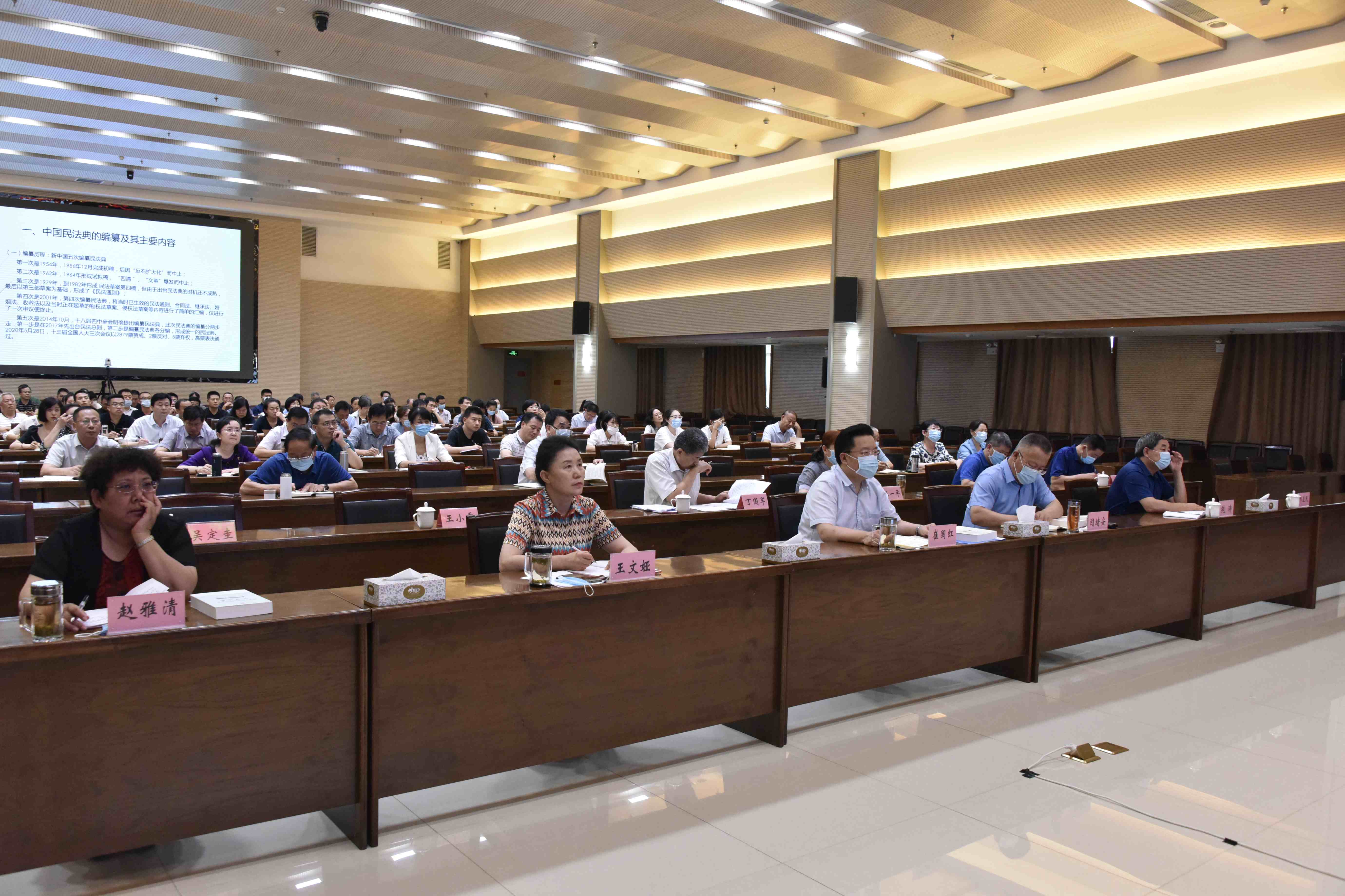 为进一步增强检察机关和广大检察人员对民法典的全面理解,准确把握、正确运用相关内容,9月2日,省检察院邀请山西大学法学院汪渊智教授进行民法典专题辅导。省检察院党组副书记、副检察长崔国红,党组成员、副检察长闫绪安,党组成员、副检察长苑涛,党组成员、副检察长赵雅清和省院干警一起聆听讲座,省检察院副检察长王文娅主持讲座。