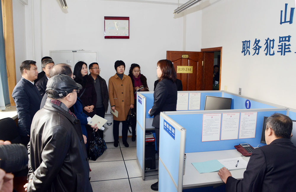 在听取了省检察院党组成员、纪检组长、规范司法行为专项工作领导组组长秦文峰关于深入开展规范司法行为专项整治工作的汇报后,代表、委员们参观了省检察院的案件管理中心受案大厅、反贪局信息情报中心、行贿犯罪档案查询室、远程视频接访室、职务犯罪12309举报电话受理中心和检务控告接待大厅,并畅谈了对检察机关的意见和建议。