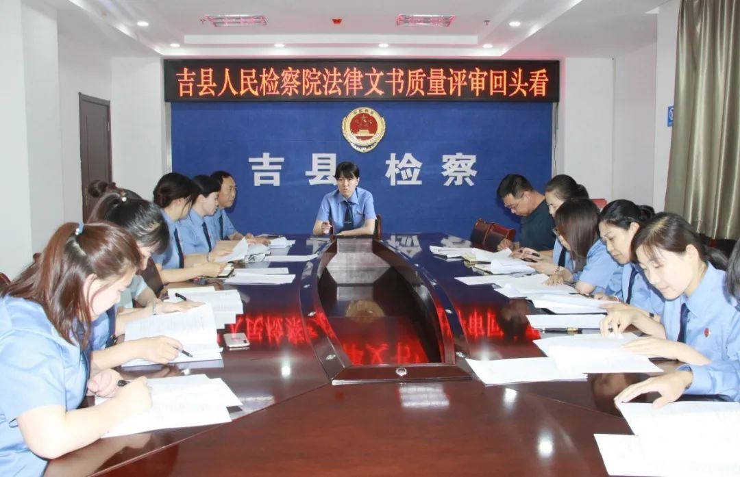 近日,吉县人民检察院召开法律文书质量评审回头看专题会议,对1至5月份的法律文书质量进行再评审,对法律文书质量评审工作进行再部署。会议由党组书记、检察长郝永丽主持。