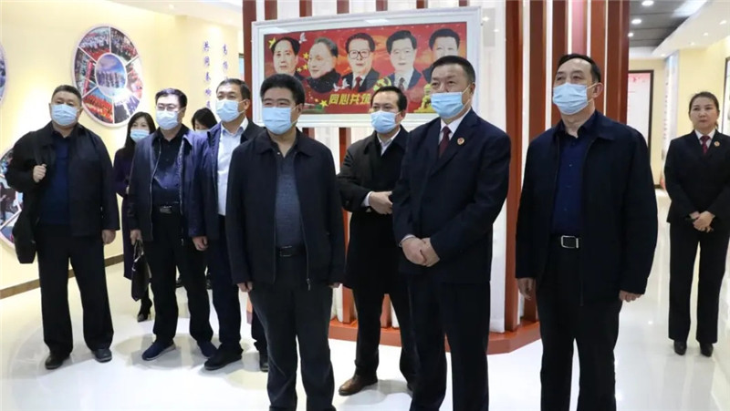 图为河北省检察院党组成员、副检察长梁红继慰问援疆干警时在州院桑加拉陪同下参观该院的民族展厅。