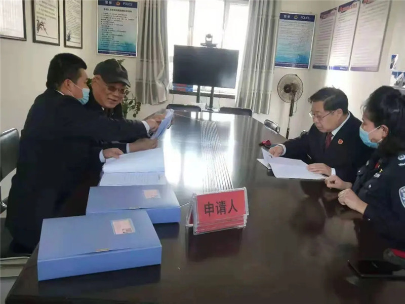 图为焉耆县检察院援疆干警吴海阔、高永智检查社区矫正执行情况。