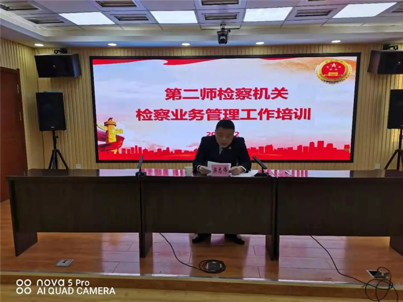 图为焉耆垦区检察院援疆干警梁志伟为兵团二师分院进行检察业务管理工作培训。