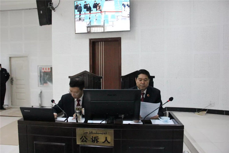 图为且末县检察院援疆干警刘朕纲与该院检察长出庭支持公诉。