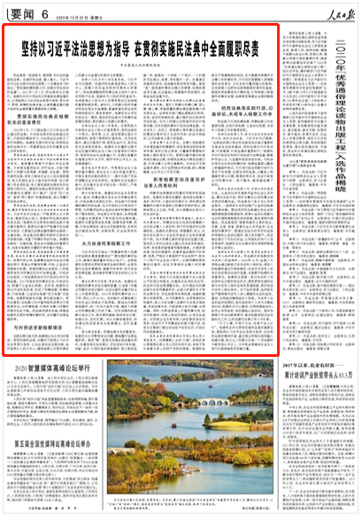 民法典不仅是民事检察、刑事检察工作的重要依循,也是行政检察、公益诉讼检察、未成年人检察工作的重要参照。
