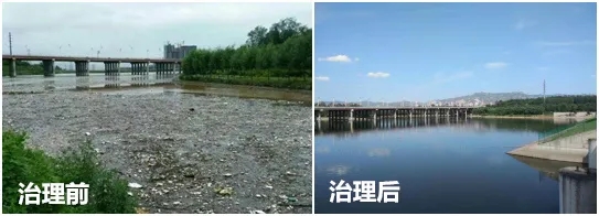 邯郸市涉县检察院案件办理后,清理污染水域面积5000平方米,打捞垃圾100多吨,形成定期报送龙湖水环境质量改善工作的长效机制。图为案件办理前后对比图。